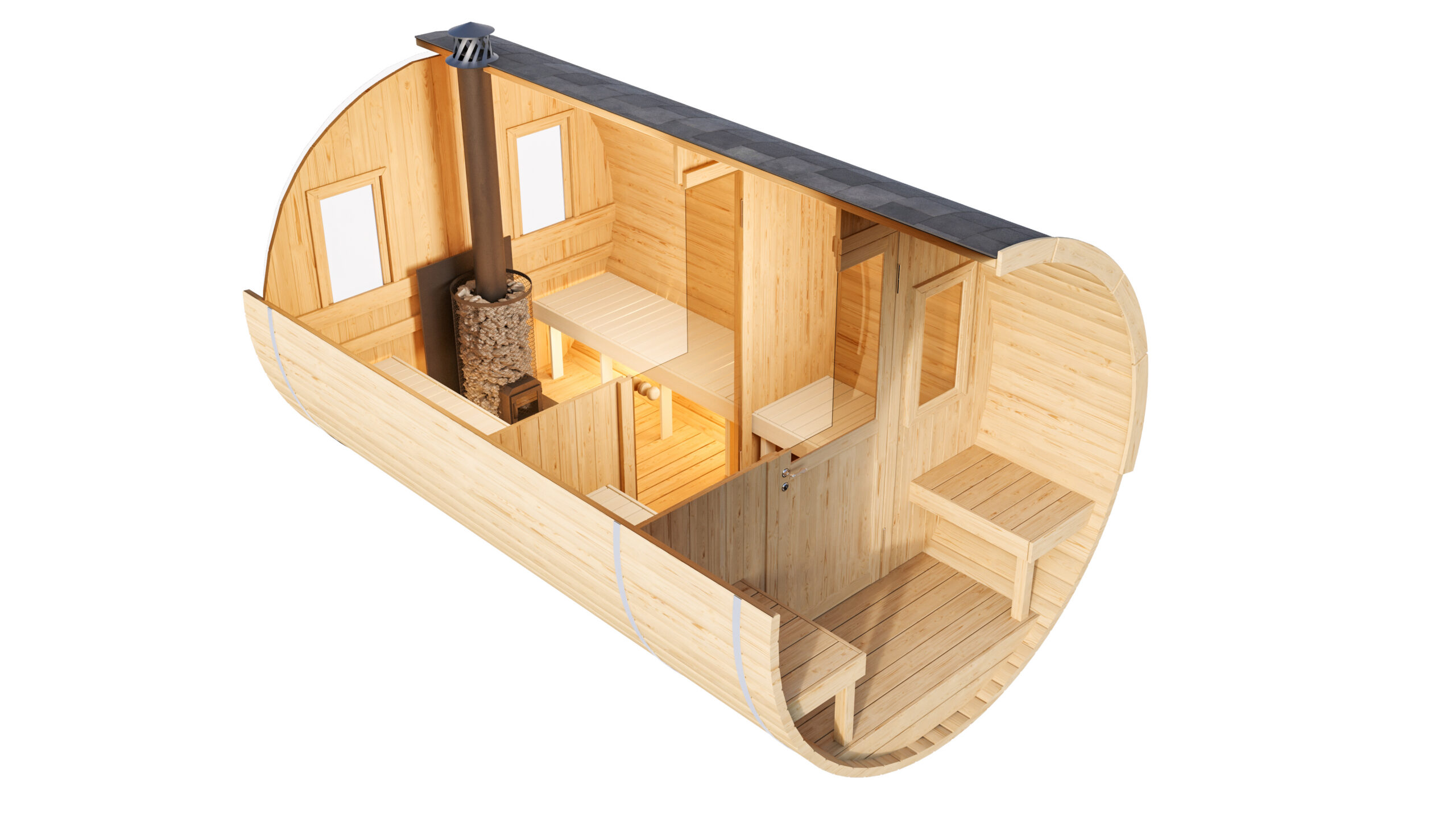 Puidu aeglase kuumutamisega hapnikuvaeses atmosfääris 160 °C-lt maksimaalselt 230 °C-ni mitme tunni jooksul muutuvad puidu koostisosad. See muundumine pakub meie termotöödeldud puidust saunamajadele mitmeid eeliseid: